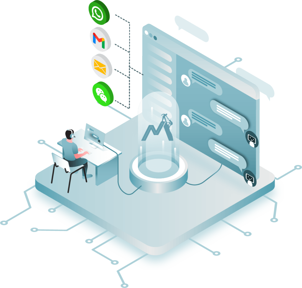 We excel in revolutionizing your customer success. We specialize in crafting seamless customer engagement experiences that span across a multitude of communication channels, including email, voice, WhatsApp, SMS, Instagram, Messenger, WeChat, Line, and direct website chat.